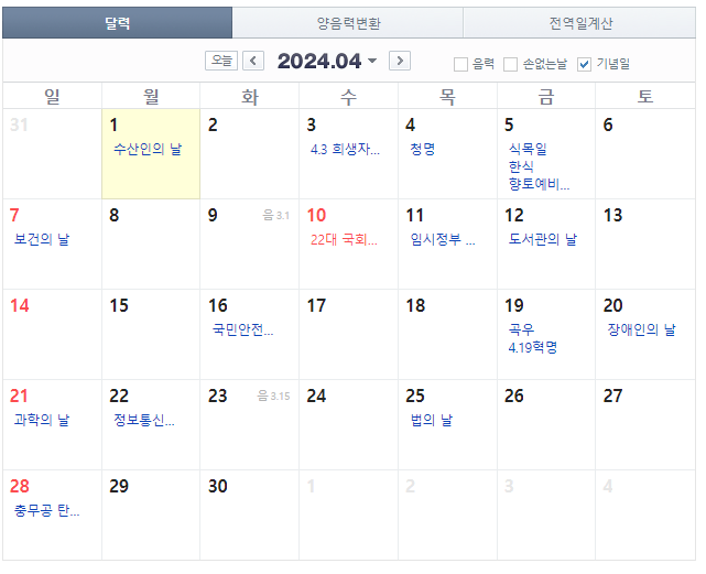 2024년 4월 1일(월) 09:00 ~ 4월 8일(월) 18:00
