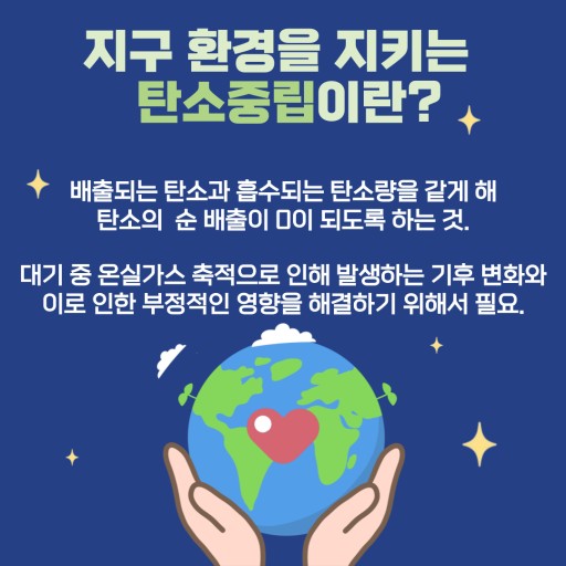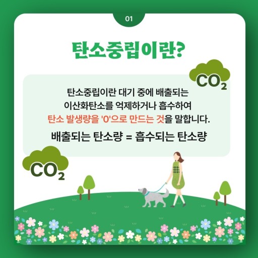 기후위기에 대응해 안전하고 지속가능한 사회를 만들기 위해 2050년까지 온실가스 감축을 목표로 한 의지를 담은 개념입니다. 온실가스 배출량이 이산화탄소 흡수량과 균형을 이루어 대기 중 이산화탄소 농도가 더 높아지지 않게 이산화탄소 순 배출량이 '0'이 되도록 만드는 일입니다.