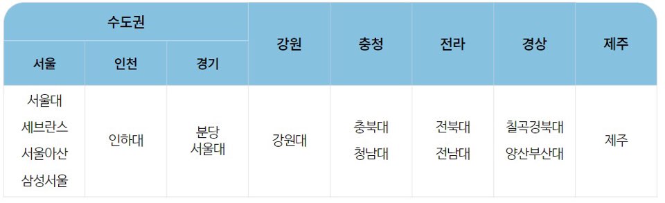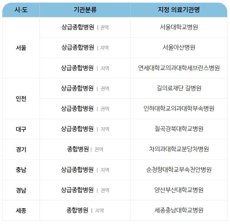 1. 충남대병원 2. 화순전남대병원 3. 칠곡경북대병원 4. 양산부산대병원 5. 국립암센터
