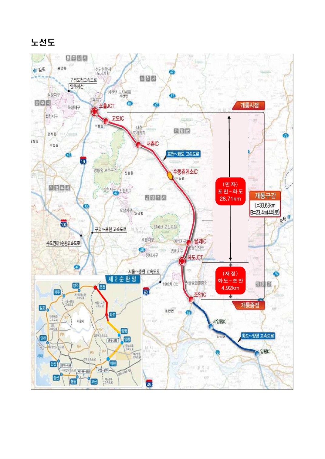 ▪소흘 JCT~ 화도 JCT 구간 (민자구간) : 연장 28.7km (포천화도고속도로(주))